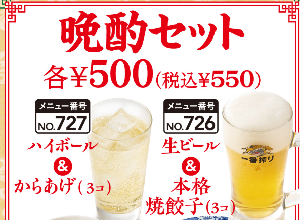 店内掲示でも目を引くのが、晩酌セットの存在です。