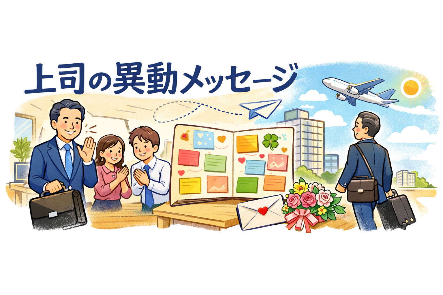 異動メッセージの軸は「お礼」。長文よりも誠実さが重要です。