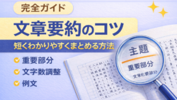 書き方 【保存版】文章要約のコツ完全ガイド|短くわかりやすくまとめる方法と例文付き 文章をうまく要約できずに悩んでいませんか?どこを削ればいいかわからないまとめると意味が変わってしまう指定文字数に収まらないこの記事では、文章要約のコツを基礎から実践まで徹底解説します。小学生〜大人まで使えるテクニックと具体例を紹介します。文... 2026.02.18 書き方