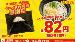 【かっぱ寿司】歳末感謝祭第2弾が12/11~平日限定開催!味噌汁・クリームケーキが82円(税込90円)に追加!おにぎり・うどんも継続で全4品が超お得。期間・対象商品まとめ。