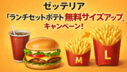 ゼッテリア 【2026年3月】ゼッテリア(元ロッテリア)「ランチセットポテト無料サイズアップ」キャンペーン!平日5日間限定 ハンバーガーチェーンの ゼッテリア では、ランチセットのポテトが無料でLサイズにサイズアップできるキャンペーンを開催します。通常は+50円で変更できるフレンチフライポテトLサイズが、期間中は無料でサイズアップ可能になります。ランチセットはも... 2026.03.05 ゼッテリア