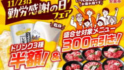 安楽亭で“いい肉の日”フィーバー!11/26〜12/2の7日間、定番焼肉が半額級、黒毛和牛も特価、小学生食べ放題1,129円に。家族で楽しめる「肉の日 week!!」の最新情報をまとめました。