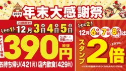 キャンペーン 【銀だこ】たこ焼1舟390円!年末大感謝祭2025まとめ|12/3〜8の6日間開催(スタンプ2倍デーも)