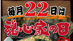 魂心家 【毎月22日は魂心家の日】ラーメン一杯600円!まくり証明書も発行される感謝デー 毎月22日は横浜家系ラーメン魂心家の日!ラーメン一杯600円で楽しめる感謝デー。スープを飲み干すと「まくり証明書」がもらえ、期限内は何度でも利用可能&期限切れ22枚でオリジナルグッズもゲット。お得すぎる魂心家の日の魅力を徹底解説! 2025.09.21 魂心家