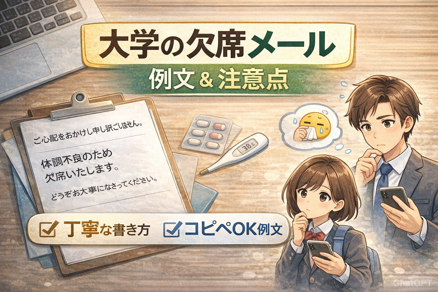 大学で体調不良により授業を欠席する場合、「どんなメールを送ればいいのか分からない」と悩む学生は非常に多いです。