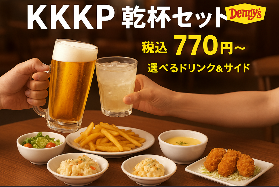 デニーズ「KKKP(勤労感謝の日 乾杯)セット」登場!選べるドリンク&サイドでおいしく乾杯|2025年版まとめ