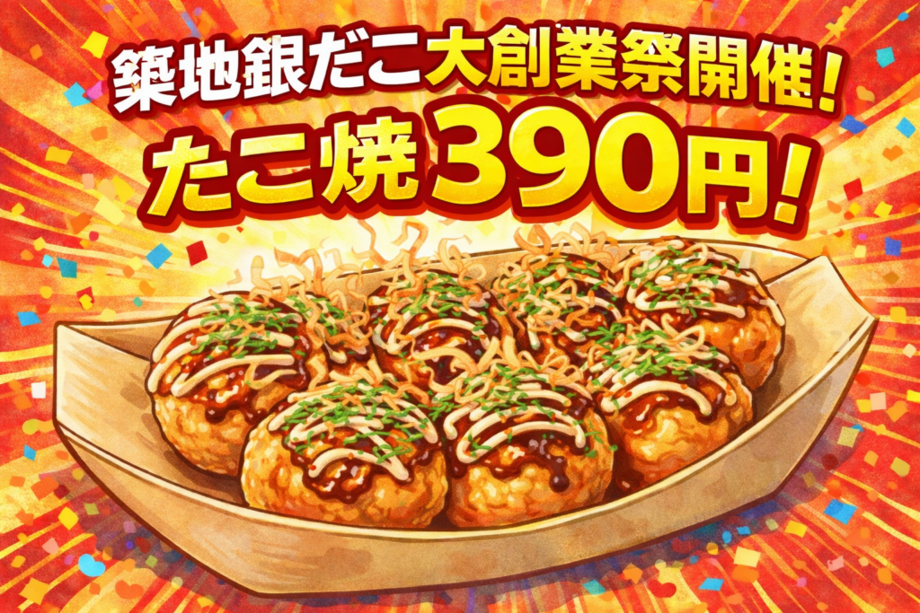 🎉【2026年】築地銀だこ大創業祭開催!3/4〜3/6は“サンキュー価格”390円【スタンプ最大3倍】