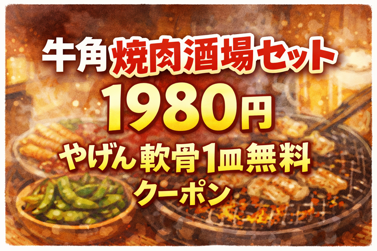 飲み放題付きで焼肉も楽しめるコスパ抜群の内容となっており、仕事帰りや学生の集まりなど幅広いシーンで利用しやすい企画です。