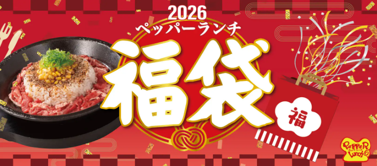 株式会社ホットパレット(本社:東京都江東区、代表取締役社長:池野隆)が展開する「ペッパーランチ」では、2026年1月1日(木)より全国約190店舗で、毎年大人気の「ペッパーランチ福袋」を販売します。