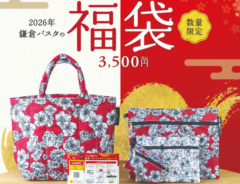 『2026年 鎌倉パスタの福袋』は、予定数量に達したためWeb予約受付が終了しました。