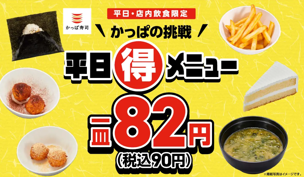 かっぱ寿司の「かっぱの挑戦 平日(得)メニュー」は、