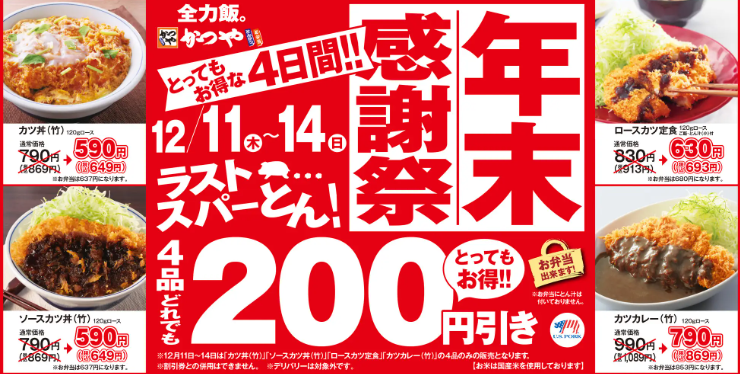 とんかつ専門店「かつや」で、今年最後の大感謝イベントが開催!