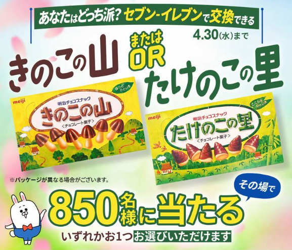 - 長谷工グループ公式LINE きのこの山 or たけのこの里が 850名にその場で当たる(1回のみ) 応募期限: 4月30日