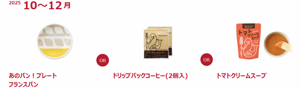 | 2025年10〜12月プレゼント | フランスパンプレート/ドリップコーヒー(2個入)/トマトクリームスープ |