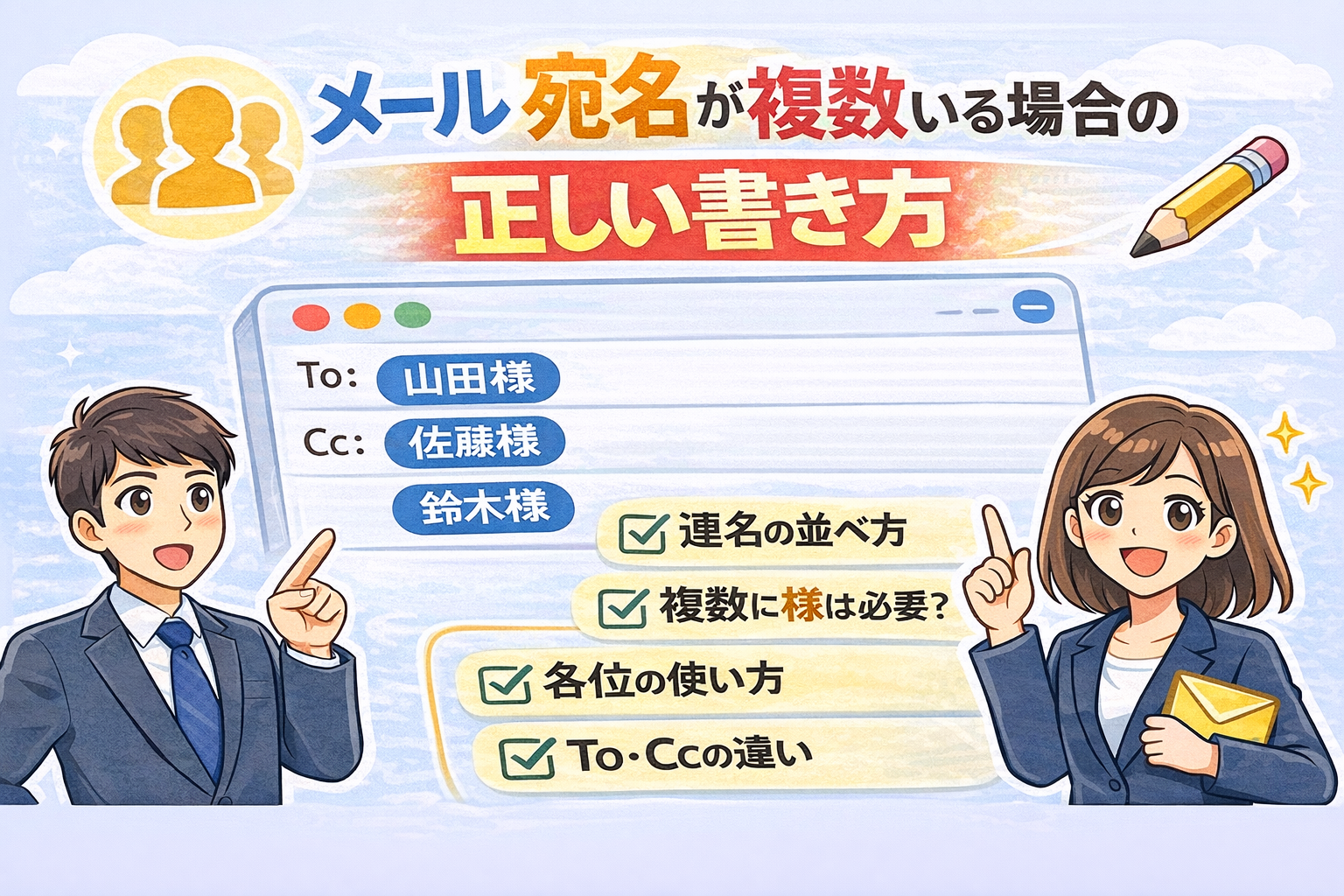メールの宛名が複数の場合の正しい書き方|連名・各位・To/Ccのマナーを解説