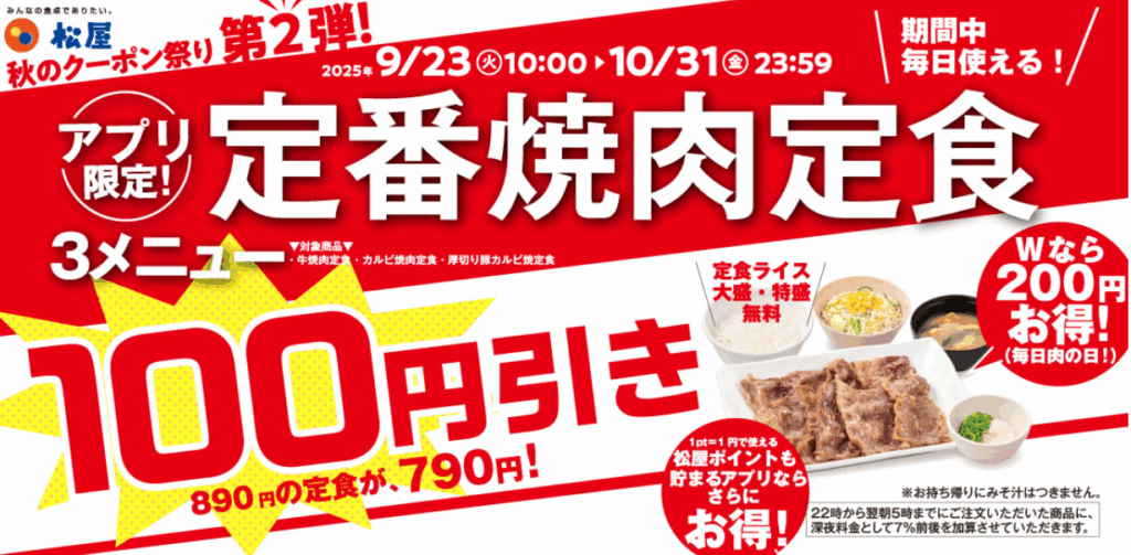 🔶 松屋「秋のクーポン祭り第2弾」概要