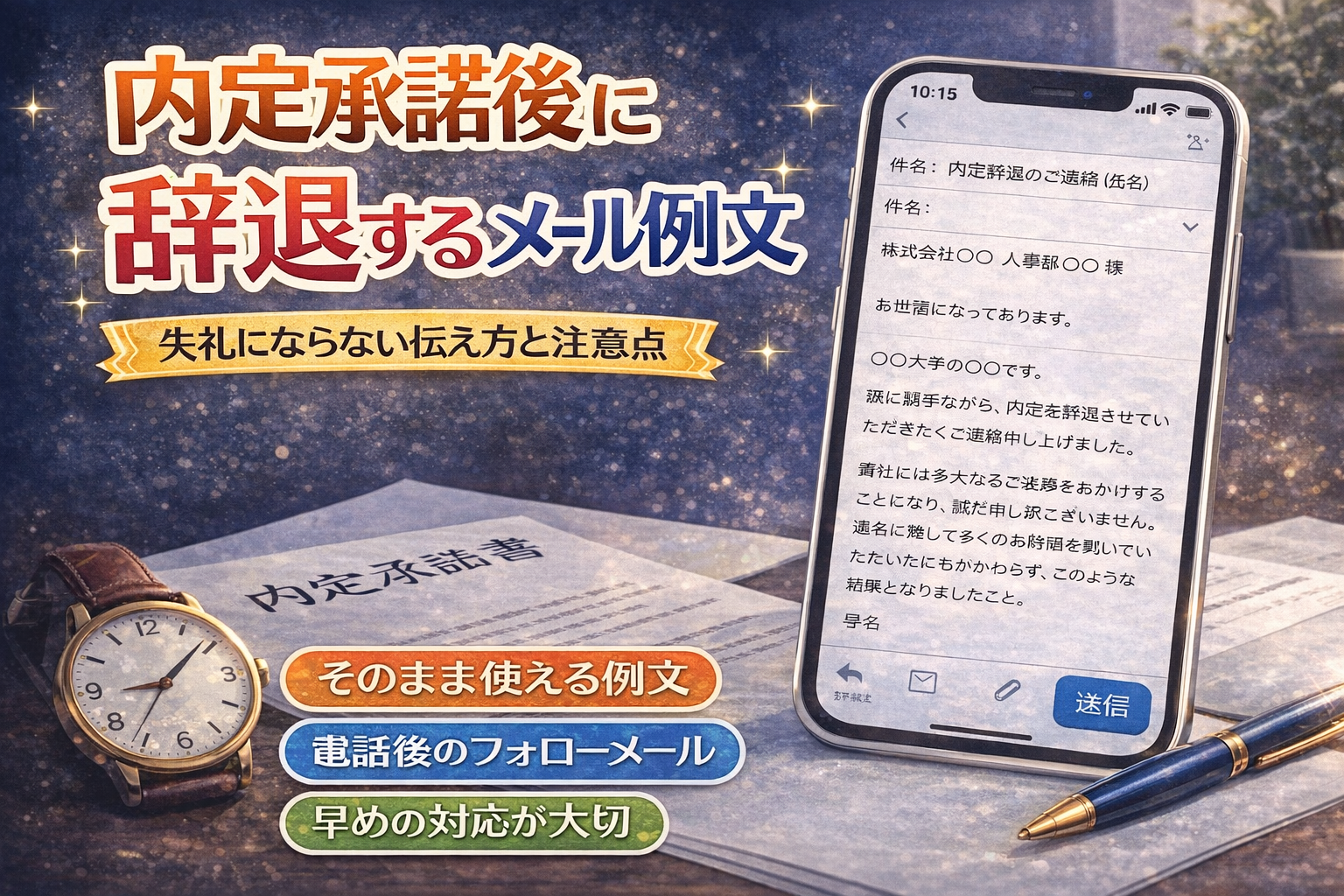 この記事では、内定承諾後に辞退する際のメール例文を、そのまま使える形で紹介します。