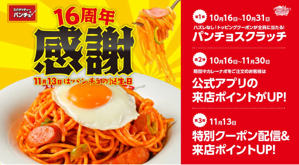感謝の気持ちを込めた「パンチョ創業16周年キャンペーン」が、2025年10月16日(木)からスタート!