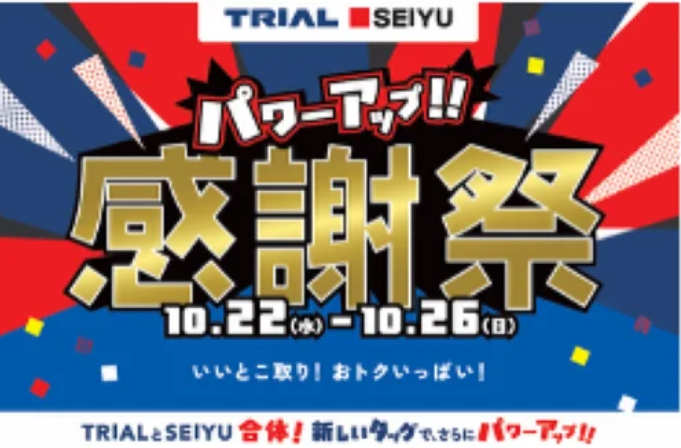株式会社トライアルホールディングス(本社:福岡市)傘下のトライアルカンパニーと西友は、2025年10月22日(水)〜10月26日(日)の期間、経営統合後初となる「合同感謝祭」を開催します。