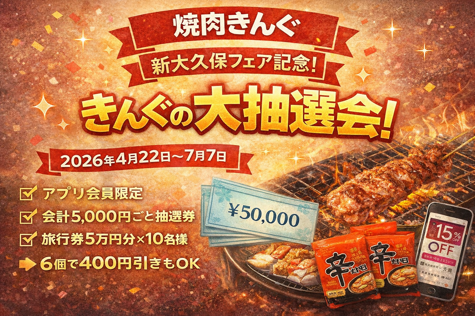 焼肉きんぐ 公式サイト|新大久保フェア開催記念! きんぐの大抽選会 | 焼肉 食べ放題